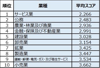 業種別のESG Ranking平均スコアは、サービス業や公務が高スコアで比較的良好な評価を得た。一方で、運輸・エネルギーや小売、製造、鉱業など、環境負荷やサプライチェーン課題を抱える業種は低スコアとなった。