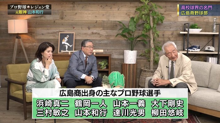 ちょっとご覧いただけますか?広島県出身のプロ野球選手を挙げてみたんですけど、下から行きましても、ギータ(柳田悠岐)はソフトバンクのスラッガーでありますし、達川さんはご存知の通りね。三村(敏之)さんは?