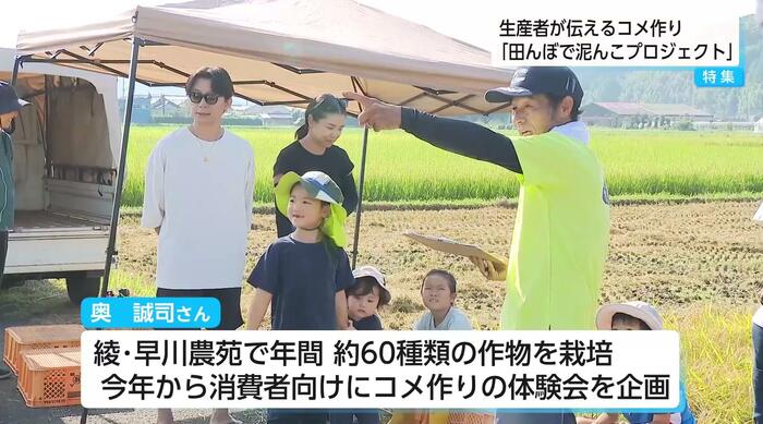 このような状況を踏まえ、綾町では生産者が消費者にコメ作りの大変さを伝える取り組みが行われている。奥さんが代表を務める綾・早川農苑では、今年から消費者向けに、田起こしから収穫までを行うコメ作りの体験会「田んぼで泥んこプロジェクト」を開始した。