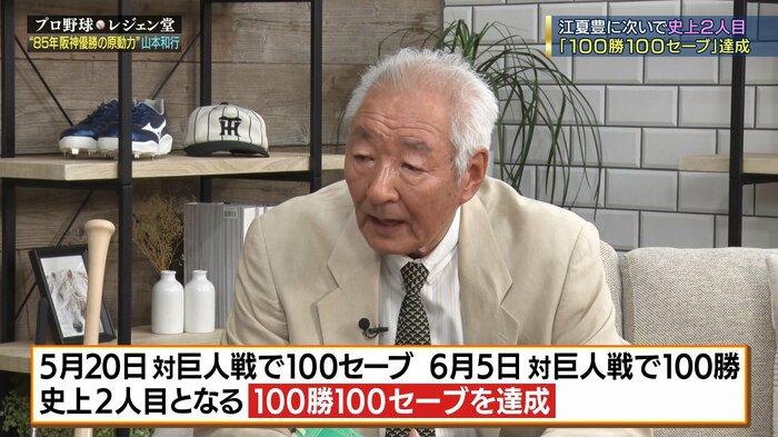 なるほどね。でもこの85年の年、もう1つ大きなね、この年に通算100勝と通算100セーブ。同じ年にそれを達成されて、どちらも巨人戦で。