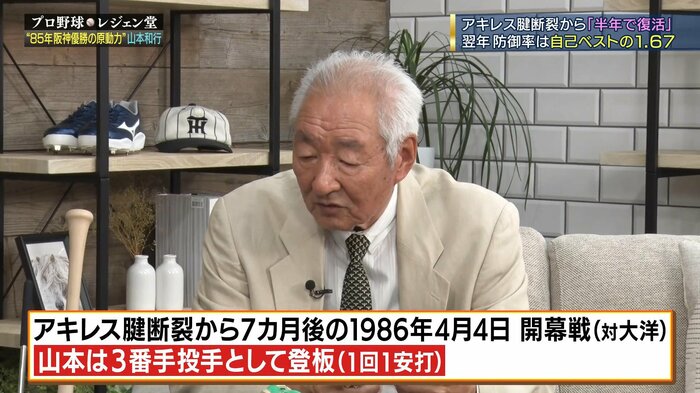 またその時に、「まあこういうもんか」と思いましたね。9月にアキレス腱(けん)を切っちゃうんですよね(阪神リーグ優勝目前の1985年9月4日、山本は試合前の練習で左足アキレス腱を断裂)。