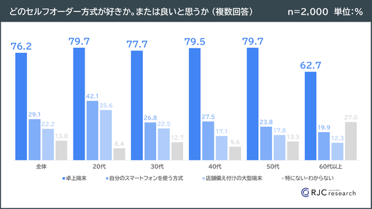 RJCリサーチ、全国20歳~69歳男女2,000名を対象にセルフオーダーに関する利用実態調査を実施
