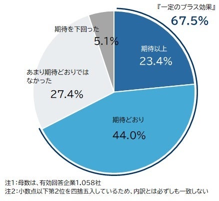 他方、「あまり期待どおりではなかった」は27.4%、「期待を下回った」は5.1%にとどまった。
