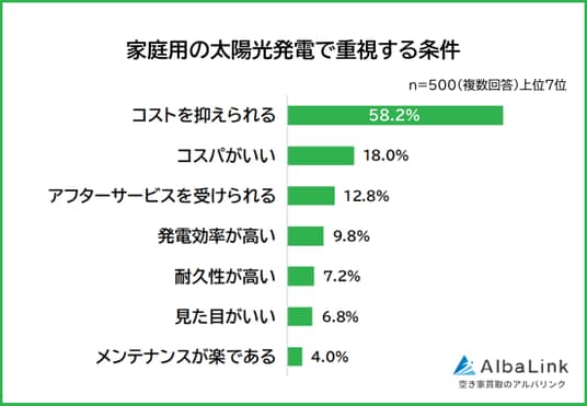 家庭用の太陽光発電で重視する条件は「コストを抑えられる」