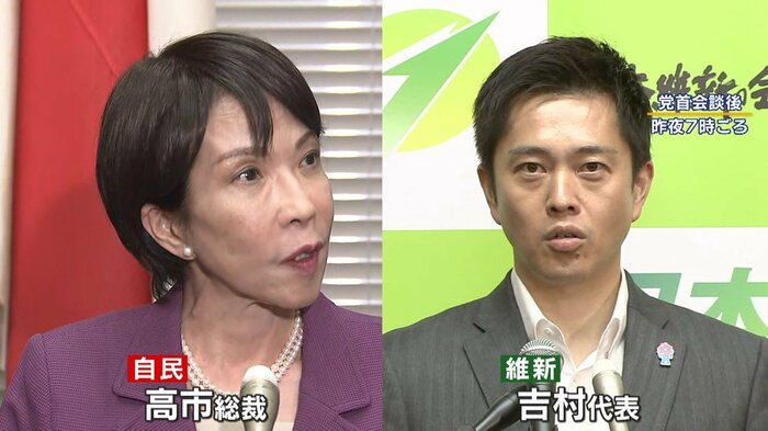 午後6時、自民党の高市早苗総裁と、日本維新の会の吉村洋文代表が会談。そして、会談後に吉村氏が「政策協議がまとまれば、総理指名選挙で高市氏に投票する」と明言したのです。
