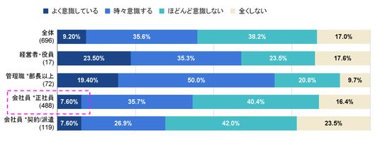 自分の勤める会社の理念に対する認知や共感、意識度合いを調査