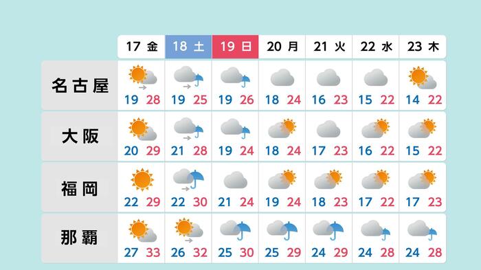 この週末は低気圧が来る前の気温アップにより夏日、そして来週は通り過ぎた後の気温ダウンという展開が予想される。