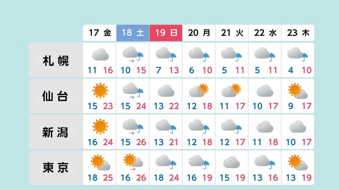 18日(土)は東京で最高気温26度と夏日になる予想だが、来週は北から寒気が南下する見込みで、セーターか、コートが欲しくなる肌寒さになるからだ。