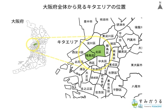 画像1:大阪府全体から見るキタエリアの位置(すみかうる)