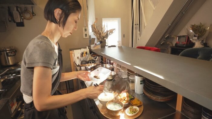 「安心安全な食材を使って、味付けとかもけっこうシンプルにしてるんですけど、オクラとかもおいしいと言っていただけるのでお母さんのおかげです」と梓さん。お米も自家製米を使用している。