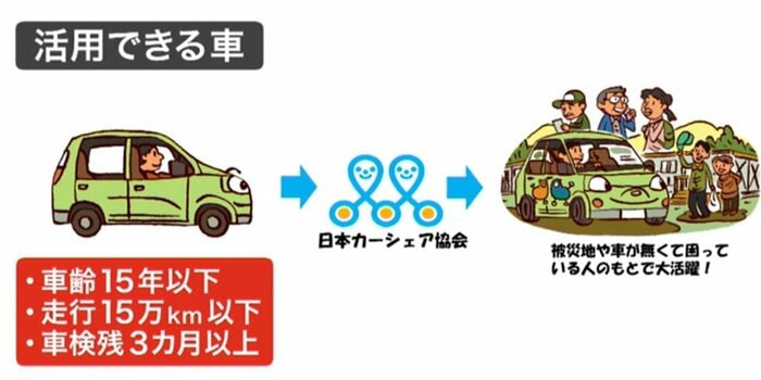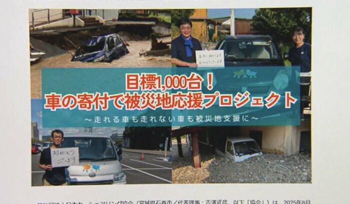 すぐに支援に活用できる車500台と、活用が難しくともリサイクルに回せる車500台のあわせて1000台を集めるというものだ。