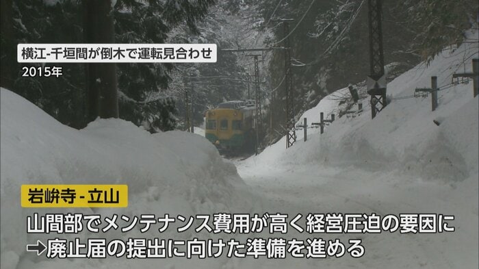 しかし、岩峅寺から立山までの区間は山間部でメンテナンス費用が高く、経営を圧迫している。現段階では廃止届の提出に向けた準備を進めているという。