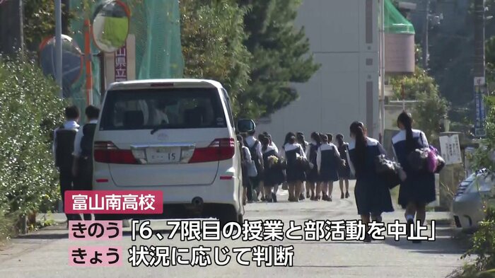 富山南高校では16日の6、7限目の授業と部活動を中止しましたが、17日は状況に応じて判断するということです。