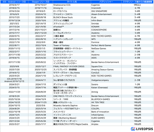 LIVEOPSIS|スマホゲームのSteam移植事例調査