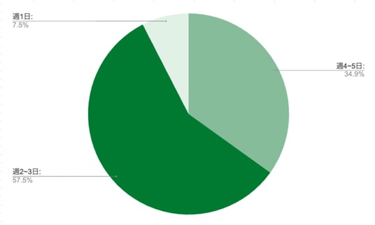 営業・セールス案件は週2~3日が57.5%と過半数を占め、他の職種とは対照的な稼働パターンを示しています。週4~5日のフルタイムは34.9%に留まり、営業職の成果重視の業務特性が反映された結果です。顧客との関係構築や商談は短期集中でも十分な効果を発揮でき、複数企業との契約を組み合わせることで収入の安定化を図りやすい職種といえます。週1日の案件も7.5%あり、専門性の高い営業スキルを持つ人材には多様な働き方の選択肢が用意されているでしょう。