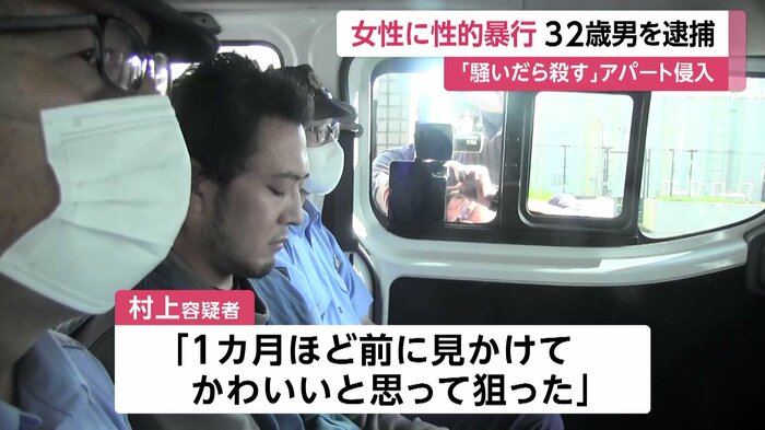 警察によると、女性の部屋は1階で、村上容疑者は鍵のかかっていない場所から侵入したとみられている。