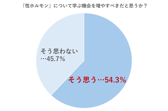 5.【不調を理解するために】「性ホルモン」を学ぶ機会を求める声は全体で54.3%、10代で66%。