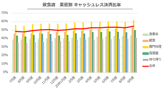 キャッシュレス決済比率は8月度から9月度にかけて、すべての業態で増加した
