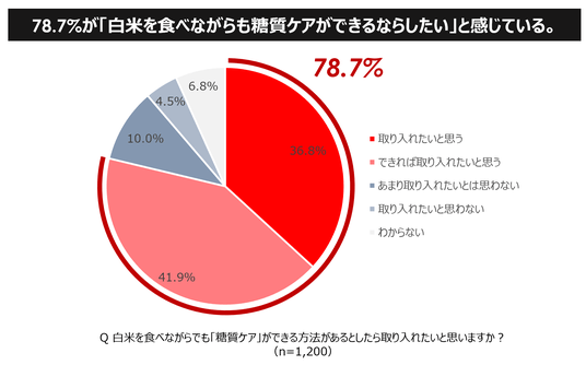 ・78.7%が「白米を食べながらも糖質ケアができるならしたい」と感じている。