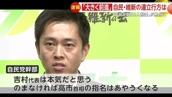 また、別の自民党幹部は「吉村代表は本気だと思う。のまなければ高市首相の指名はあやうくなる」という。