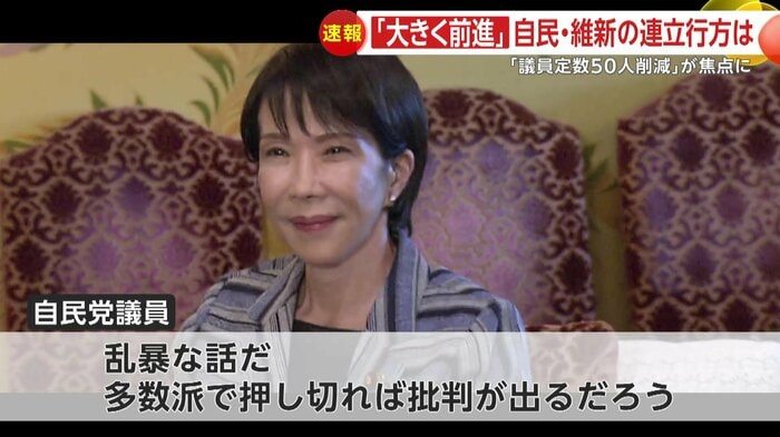 連立の焦点に浮上した議員定数削減に、ある自民党議員は「乱暴な話だ。多数派で押し切れば批判が出るだろう」と話している。