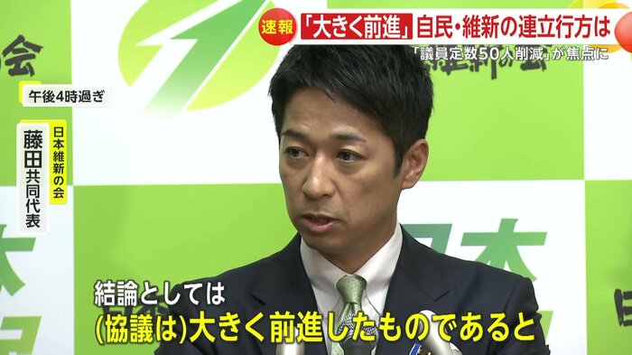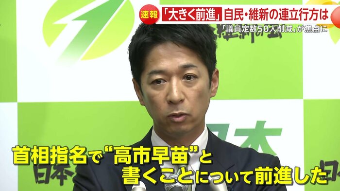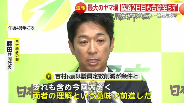 吉村代表が合意の絶対条件としている「議員定数の削減」だが、進展はあったのか。