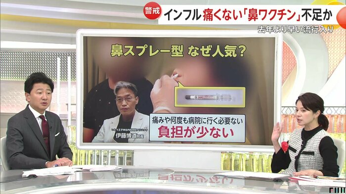 本格的な流行シーズンに突入している中、2024年から接種が可能になった「鼻スプレー型」のワクチンの接種が増えているという。