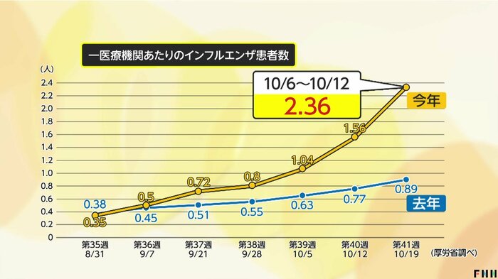 厚労省によると、全国の1医療機関あたりのインフルエンザ患者数は、9月末から急激に増加。