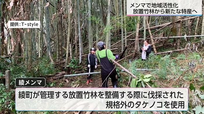 綾メンマには、綾町が管理する放置竹林の整備で伐採された規格外のタケノコが使用される。