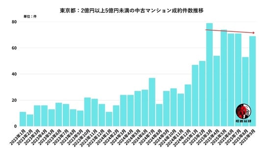 次に、5億円以上の超高額帯を見てみましょう。この価格帯は、いわゆる「富裕層マーケット」に該当します。