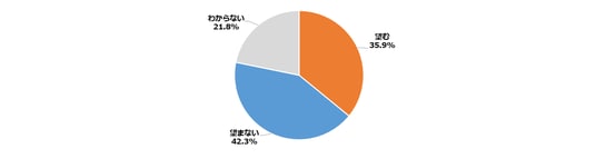 自民以外の政党を中心とする政権への交代を「望まない」42.3%、「望む」35.9%となった。「わからない」は21.8%だった。