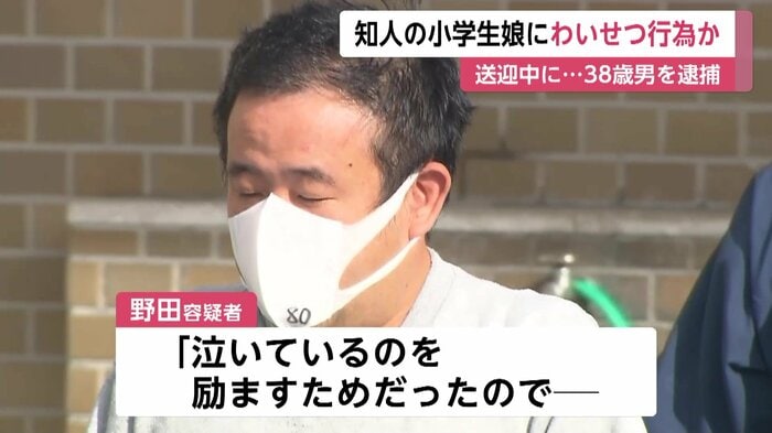 野田容疑者は女の子の母親の知人で、「塾の送り迎えをしてあげる」などと言って女の子を迎えに行き、自宅に送る途中で犯行に及んでいて、その後、女の子が母親に「抱きつかれた」と被害を訴えたことから事件が発覚した。