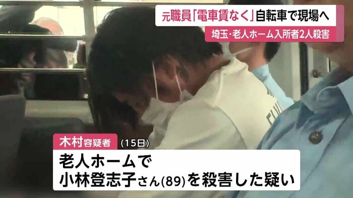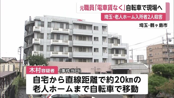 埼玉・鶴ヶ島市の老人ホームで入所者2人が殺害された事件で、逮捕された元職員が現場に自転車で向かった理由について、「電車賃がなかった」と話していることが分かった。