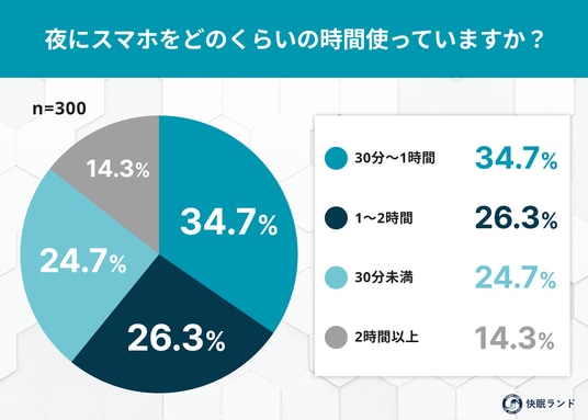 - 夜にスマホを使う時間は「1時間以上」が6割