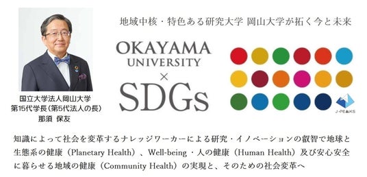 国立大学法人岡山大学は、国連の「持続可能な開発目標(SDGs)」を支援しています。また、政府の第1回「ジャパンSDGsアワード」特別賞を受賞しています。地域中核・特色ある研究大学として共育共創を進める岡山大学にご期待ください
