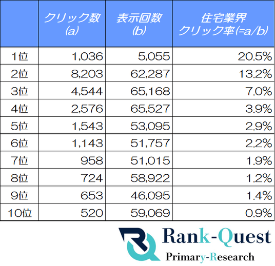SEO支援実績4,300社超のランクエスト(https://rank-quest.jp/column/column/how-to-seo/ )は、2025年9月、住宅業界のクライアントサイトを対象に「検索順位別クリック率(CTR)」の大規模調査を実施しました。