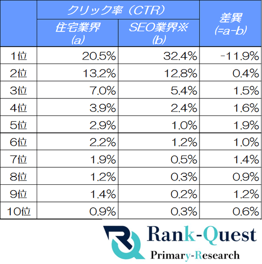 ※ SEO業界のCTR情報はランクエストサイト(https://rank-quest.jp/ )のデータに基づいています。
