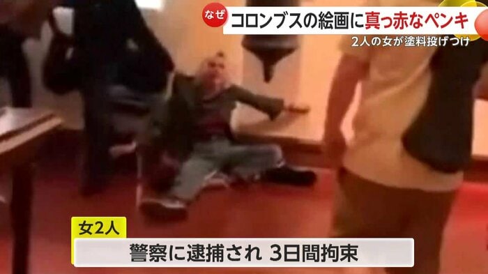 今回、コロンブスの絵画にペンキを投げつけた女2人は警察に逮捕され、3日間拘束されたという。