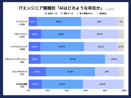 PM、ITコンサルAI活用進むも、バックエンド・フロントエンド4割「使う場面ない」