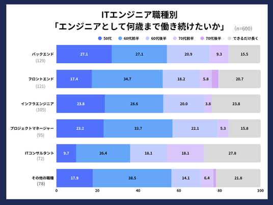 バックエンドエンジニア約27%が50代でリタイヤ望む