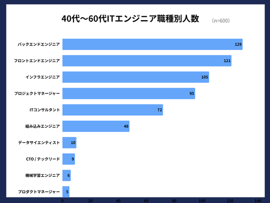 参考/40~60代ITエンジニア600名の職種別人数内訳
