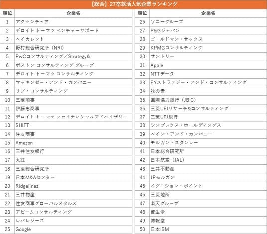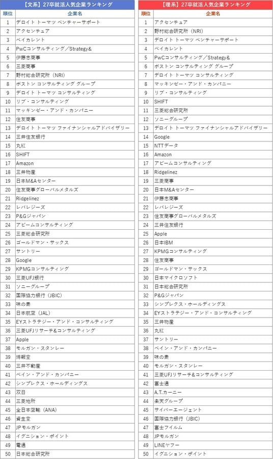 ■就活人気企業ランキング(2027年卒、2025年6月時点)はこちら