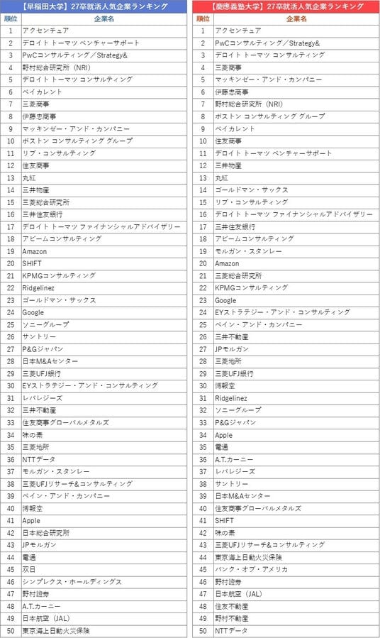 究所(NRI)、早稲田大学と慶應義塾大学はいずれもアクセンチュア