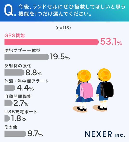 ■53.1%が、ランドセルにぜひ搭載してほしいと思う機能は「GPS機能」