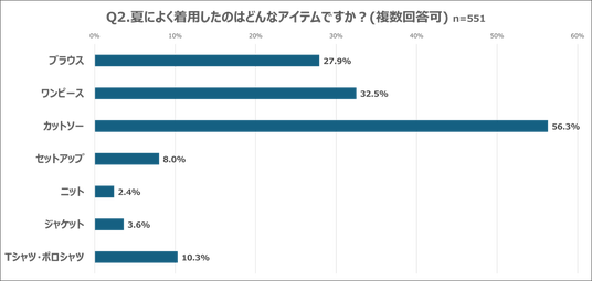 ●夏によく着用したアイテムは「カットソー・ワンピース」