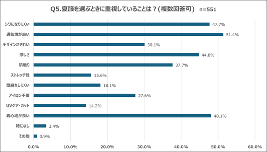 ●夏服選びで重視されるのは「洗える・シワにならない・着心地が良い」