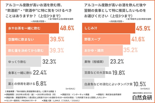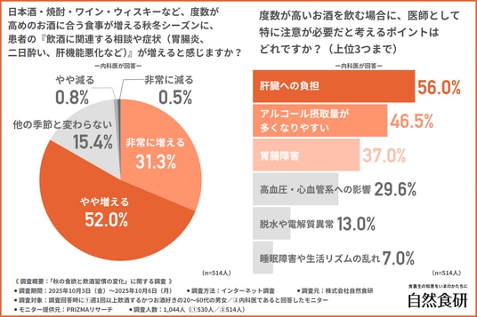 しかし、内科医の約8割が「秋冬は飲酒関連の相談や症状が増える」と回答しており、アルコール度数が高いお酒を飲む機会の増加が健康トラブルにつながる可能性も明らかになりました。