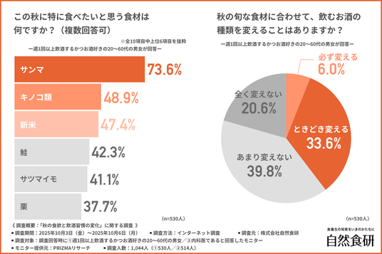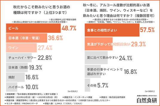 今回の調査で、秋は「食欲の秋」と呼ばれるように、食事もお酒も楽しむ季節として多くの方に意識されていることが明らかになりました。