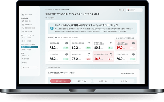 今回の調査で、多くの管理職が自身の担当業務を抱えるプレイングマネージャーであり、部下と向き合うための時間を十分に確保できていない実態が明らかになりました。その結果、約4割が部下の離職や休職の予兆を事前に把握できておらず、その最大の要因が「自身の業務過多」であることも判明しました。この課題は管理職個人の能力や意欲の問題ではなく、部下の本音と向き合う時間が取りにくいという構造的な問題であると言えます。組織全体の生産性を向上させるためには、多忙な管理職の負担を増やさずに、部下一人ひとりの状態をデータに基づいて可視化し、適切なフォローを支援する仕組みを構築することが不可欠です。