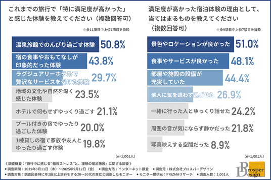 温泉や食事、ホテルの贅沢なサービスなど、“非日常をじっくり味わえる体験”が上位を占めているようです。滞在先での過ごし方が満足度に直結していることがうかがえます。